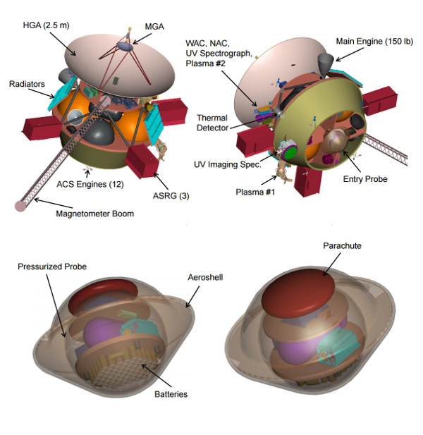Elképzelés az Uránusz körüli pályára állítandó szonda és a légkörbe behatoló egység lehetséges felépítéséről. (Kép: NASA / JHU APL)