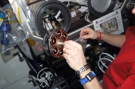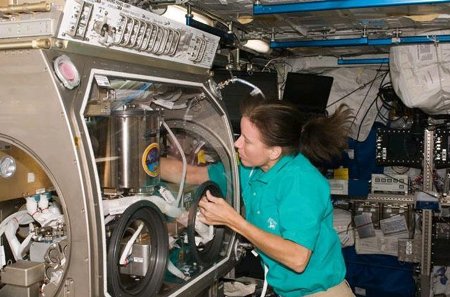Shannon Walker amerikai űrhajósnő, az ISS 24. személyzetének tagja a SAME kísérlettel dolgozik, a Columbus laboratóriumban. (Képek: NASA)