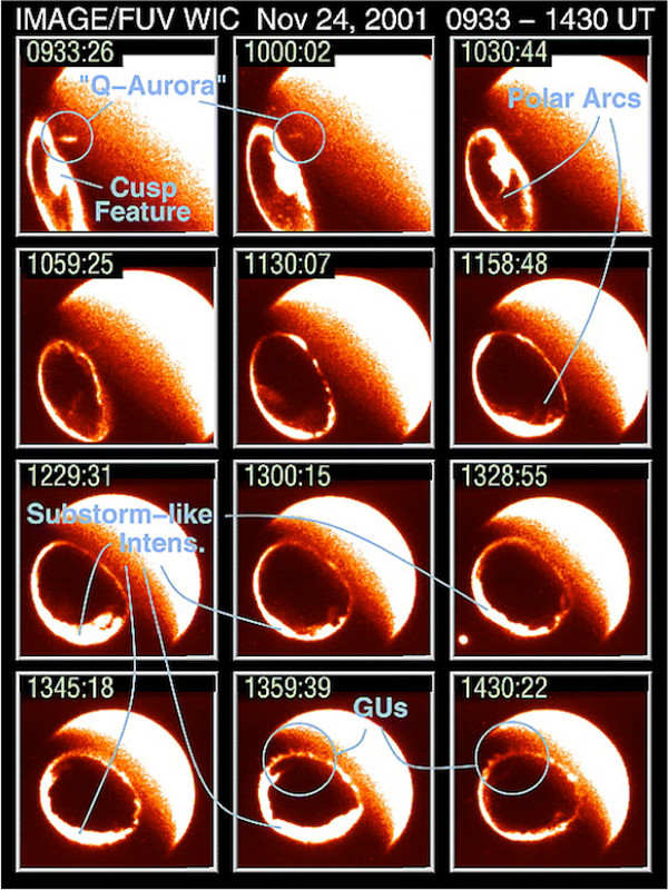 A lökéshullám és magnetopauza helyzete döntő fontosságú az űrplazma fizikai méréseinek értelmezése szempontjából. A lökéshullám előtti tartomány (foreshock) pedig nagy energiájú gyorsítási folyamatok, illetve nagyon változatos plazmafizikai jelenségek színtere. A magnetopauzán történő energia- és anyagáthaladás megértése pedig döntő fontosságú a távközlési, meteorológia és navigációs műholdak biztonsága, illetve a rádiókommunikációt és a műholdas helyzetmeghatározás pontosságát befolyásoló 100–120 km magasan lévő felső légköri, részben töltéseit vesztett atomokból és molekulákból álló réteg, az ionoszféra állapota szempontjából. Ezeket a vizsgálatokat sokáig csakis a műholdak mágneses teret, plazmasebességet, hőmérsékletet és sűrűséget mérő műszereivel lehetett elvégezni. A határfelületek helyzetét pedig nagyon sokféle űrszonda, hatalmas mennyiségű lökéshullám és magnetopauza keresztezésén alapuló statisztikákkal lehetett megbecsülni, hiszen ezek a felületek nem voltak láthatóak, csak műszerekkel észlelhetőek. Ezt változtatta meg a kalandos életű, 2000. március 25-én elnyúlt poláris pályára felbocsátott, 2005 decemberében elvesztett, majd 2018 augusztusában újra megtalált Imager for Magnetopause-to-Aurora Global Exploration (IMAGE, vagy Explorer-78, vagy MIDEX-1) NASA műhold. Az űreszköz az emberi szem számára nem látható ibolyántúli tartományban készített felvételeket a sarki fényről és a Föld mágneses terével együtt forgó tartományról, a plazmaszféráról (2. ábra). Ezeket a folyamatokat az ún. töltéscsere jelensége (3. ábra) teszi láthatóvá távoli ibolyántúli és a lágy röntgentartományban.
