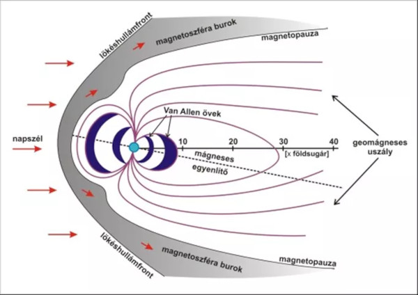 A földi magnetoszféra felépítésének vázlata