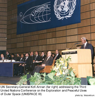 Az 1999 júliusában Bécsben tartott UNISPACE III konferenciát az ENSZ akkori főtitkára, Kofi Annan nyitotta meg. (Kép: UN)