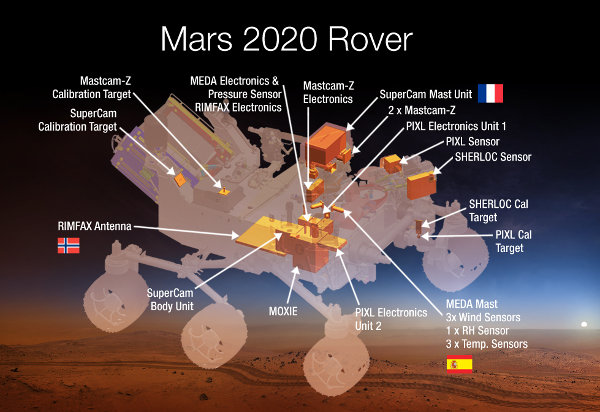 A jelenleg a Marson dolgozó Curiosity-re nagyban hasonlító, az ott bevált módszerrel leszálló, 2020-ban startoló rover hét tudományos műszeregyüttest visz magával. A „nyerteseket” július utolsó napján nevezték meg az amerikai űrügynökségnél. A megszokottnál is több, összesen 58 javaslat közül választották ki ezeket. A megépítésre kijelölt eszközök láttán már biztos, hogy bár az új marsjáró szerkezetét tekintve a Curiosity mása lesz, a tudományos program, amit végre szeretnének hajtani vele, lényegesen eltérő.
